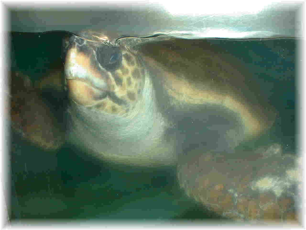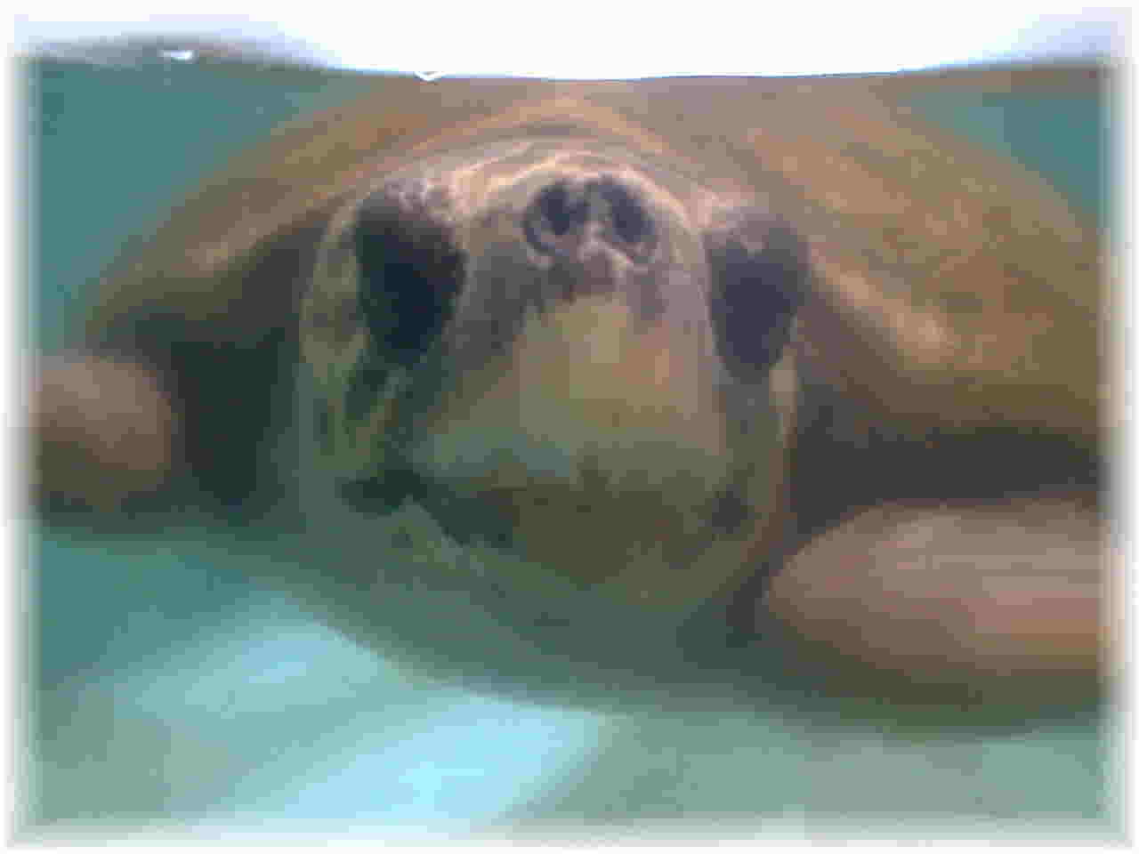 アカウミガメです。アクリルの板があって横からのぞけるようになっています。