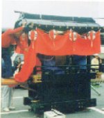 だんじりは、戦前は屋根が布張り。何回も修理を重ねたが、昭和27年(1952)ごろ現在のような木造の屋根となった。また、車輪は昭和60年ごろに木製のものから鉄製のものに取り替えた。