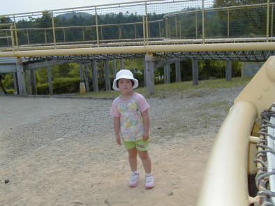 たけべの森での春奈、なんとこの遊具、有料です。 |