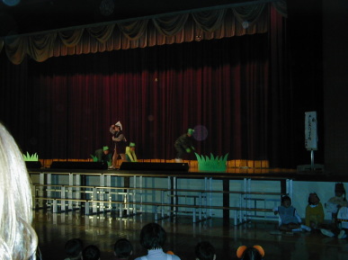 あっくん、小学校での大舞台。学芸会の日がやってきた。その前に運動会はどうなったとご心配の方も折られるかと思いますが、、、、残念ながら運動会の日は熱を出して欠席でした(入院までして)そういうことであっくんにとってはこの学芸会が最初の大舞台となるわけです。数ヶ月前から練習をつんで(?)初舞台に望んだあっくんは親の心配をよそに見事、かえるの役をこなし、初舞台は終わったのでした(親ばか)