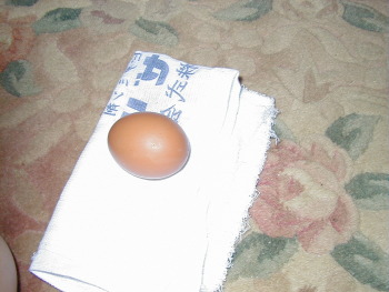 春奈の幼稚園情報も入園式以来だが、これには涙無くしては語れない深ーーーーーいわけがあるのです。入園式後、しばらくの間は保護者同伴で園児がなれるまで一緒に幼稚園で遊び、なれたら置いて帰るといったシステムになっていました。でも、あの春奈ならすぐに離れるだろうと気にもしていませんでした。ところが、、、現実は甘くなかったのでした。春奈の「ずーっといっしょにいてね」が結局1学期中続き、最後には親が逆切れしてしまうほどでした。(最後までついていたのは我が家だけでした)その後夏休みをはさんで2学期になると何事も無かったようにすーっと離れてくれて親も一安心。この日も幼稚園から大事そうにかかえてきたいただきもの。鶏の卵だそうです。今日は春奈の番でいつまでも大事そうに抱えていましたが結局はるなが飽きたときに目玉焼きになったとさ。