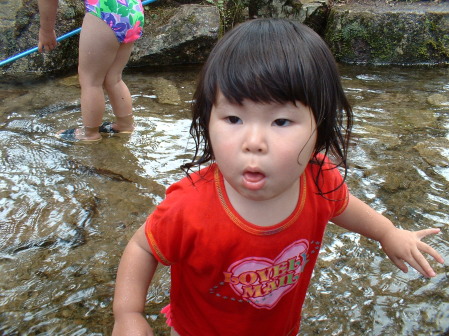 有利菜もつかみ取りに参加しています。水がとても冷たいです。 |