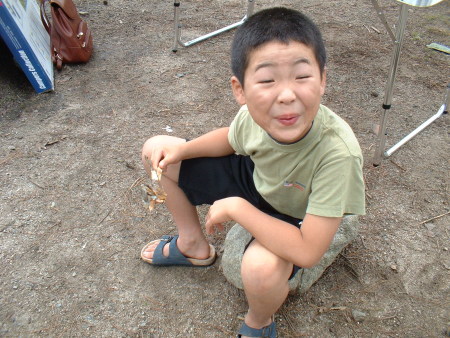 うみうし家、夏休みの行事。第1弾。初のキャンプを実施することになった。本当はお盆あたりに行こうかなーなんてのんびり構えていたのだが、夏休みに入って予約の電話を入れてびっくり!お盆はぜーーーーーんぶ満員で空いてませんとのこと。仕方なく、30日〜31日に急きょ行くことにした。 天候にはちょっと恵まれず、1日目はあいにくの霧雨状態であったが2日目は快晴でまずまずかな?ってとこでした。初めての家族キャンプのため準備に手間取り次回からの勉強になった。ところで今回行ったキャンプ場は去年あっくんと行ったあののとろ原キャンプ場である。その模様はここからどうぞ!中国山地のど真ん中にあり、夜はたぶん10度の前半ぐらいの涼しさというか寒いといった方が良いだろう。皆さんも1度いかれてみては?キャンプ場のHPはここです。
