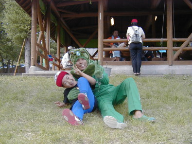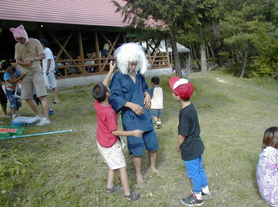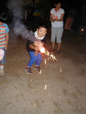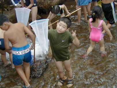 あっくんが待ちに待った行事がやってきた。キャンプである。が、今回も危うく中止になるところであった。前の日にまたもや熱を出してもうだめかなと思ったところ、お医者さんの許可が出て、当日元気になったあっくんは無事参加することができました。会社の組合が主催するキャンプとあっていたせりつくせりの待遇で、大変楽しみました。キャンプ場をあの千と千尋の神隠しをもじって千は出てくるはハクは出てくるはいろんな登場人物がいて子供たちは大喜びでした。また来年も行こうね、あっくん。