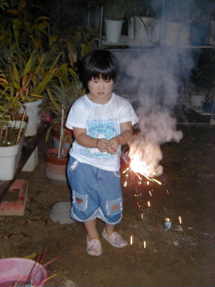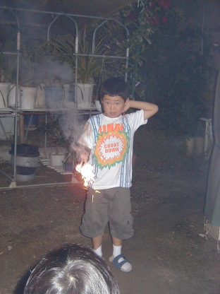 | 1歳半のときに花火の「火」のところを握ってやけどをして以来ちょっと怖がっていましたがもうだいじょうぶです。 | |