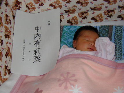 名前が決まりました「有莉菜」(2001.5.27)