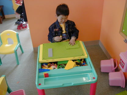 あっくんもダイヤブロックの館でお遊び。何を作ってるんでしょうか? |