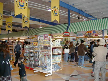 このおもちゃ王国から帰る最後の難関!!!おもちゃ売り場。この建物の中を通らないと出口にたどり着けません。なんてずるいやり方。この日も結局子供2人におもちゃを買ってやる羽目に。 |