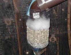 雨水取り入れ口のT字の先に1M程度の初期雨水がたまるように設計。初期の汚い雨はこちらにたまるようになっています。そして雨がきれいになったところでタンクに入るようになっています。一雨降るとここからブローします。