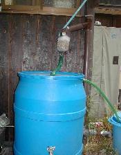 水道代節約といっても、水を飲まないわけにはいかない。風呂に入らないわけにはいかないので何かないかなあと思っているところにどこかのホームページでみつけた「雨水利用」これはいいと下のようなシステム(?)を自作してみました。