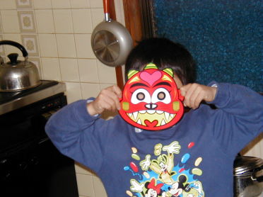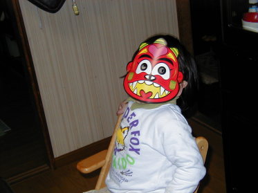 春奈です。鬼のお面をかぶって、はしゃいでいます。 |