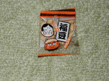 今年も節分の日がやって来た。我が家恒例(?)豆まきの開始である。鬼の役はもちろん私。鬼の面をかぶって豆まき開始。今年はあとで食べられるように下のような袋入りの豆を投げた(ちょっと雰囲気が出ないが、、)あっくんも春奈も喜んで豆を投げた。こういう日本の伝統的な行事は欠かさずやっていきたいと思っているのだが、私自身日本の伝統的な行事というものをよくわかっていないので困っている。節分とは冬と春の境目(昔は2月4日がお正月だったらしい。俗に言う「旧正月」だそうだ。ということで2月3日は大晦日。)に豆をまいて今年の厄を払ったそうだ。豆まきが終わると歳の数だけ豆を食べ、今年の節分は終わった。でも歳以上の豆を食べたような気がする、、、、、、