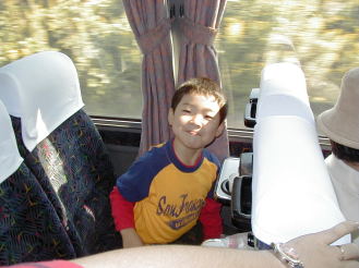 バスに乗ってうれしそうなあっくん |