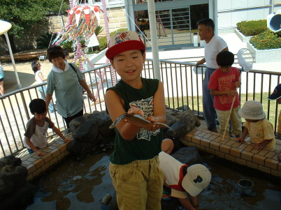 魚のつかみ取りです。魚も大変です。 |