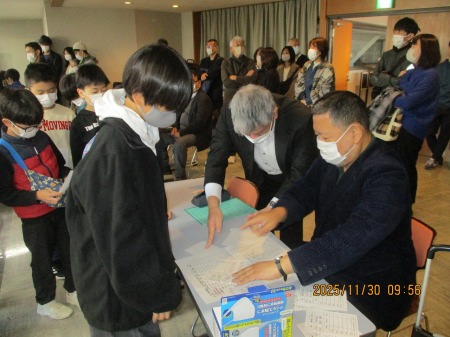 名人戦クラスはくじ引きで相手を決めました。 B級クラスは役員が地区の違う子供同士当るように決めました。 |