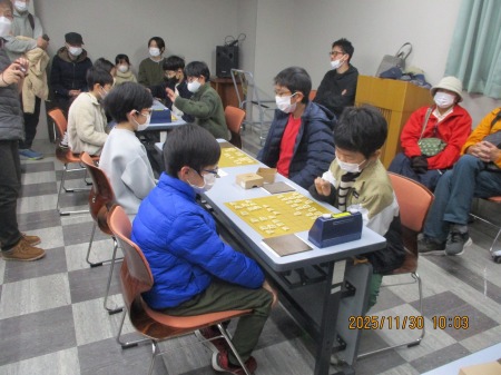 水島教室から小川君、正木君、六車君、松井さん、藤君が名人戦に参加。