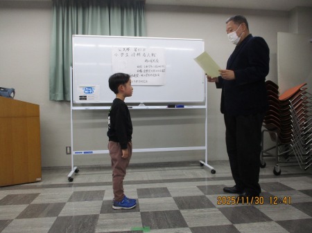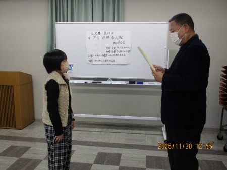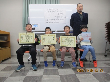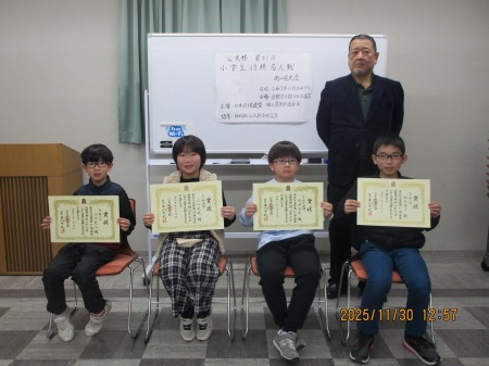 名人戦入賞者 優勝 土山史織さん 準優勝 松浦永真くん 第3位 小川寛人くん(水島教室) 第3位 鈴木陽斗くん |