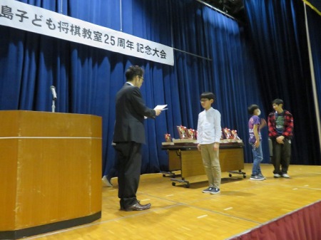 15時30分から表彰式 S級優勝の大分の麻生潤君、春休みで親戚に来たので参加。 |
